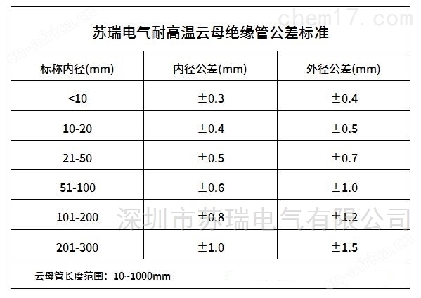 五、云母管公差标准: