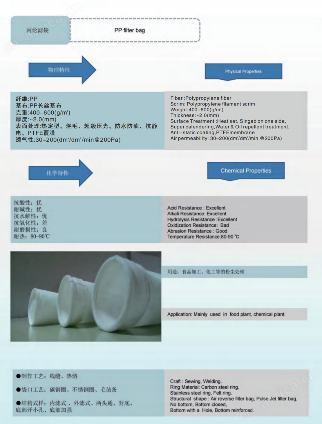 丙纶滤袋具有耐酸碱性强、耐磨性好、疏水性强等特点,主要应用于化工、冶金等领域。