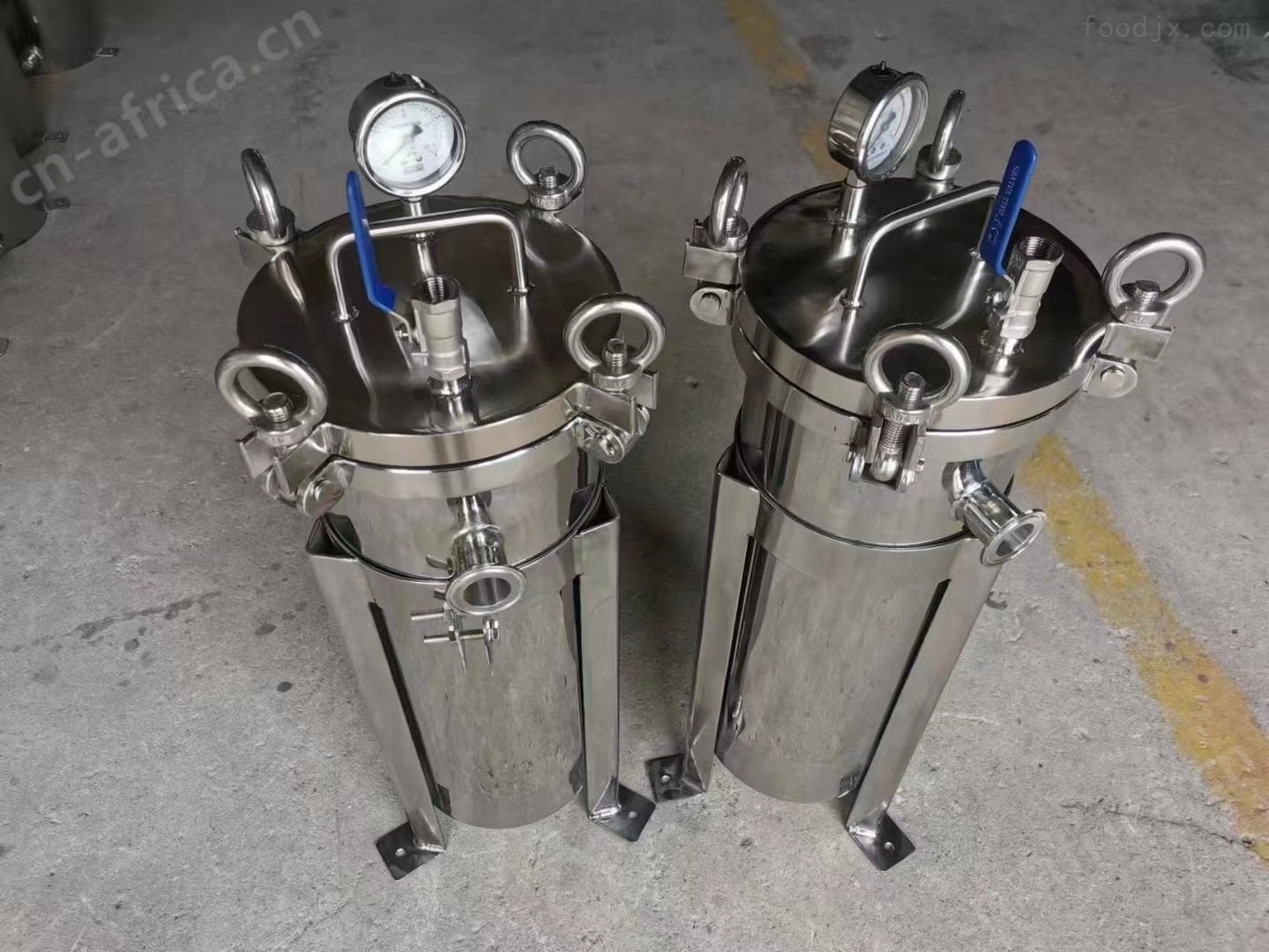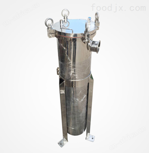 袋式过滤器是一种压力式过滤装置,主要由过滤筒体、过滤筒盖、快开机构、不锈钢滤篮等部件组成。过滤机内部由金属网篮支撑滤袋,液体由过滤器外壳的旁侧入口流进滤袋,经滤袋过滤后从出口流出,杂质被拦截在滤袋中。该机更换滤袋十分方便,过滤基本无物料消耗。